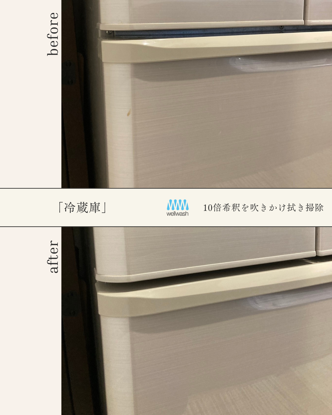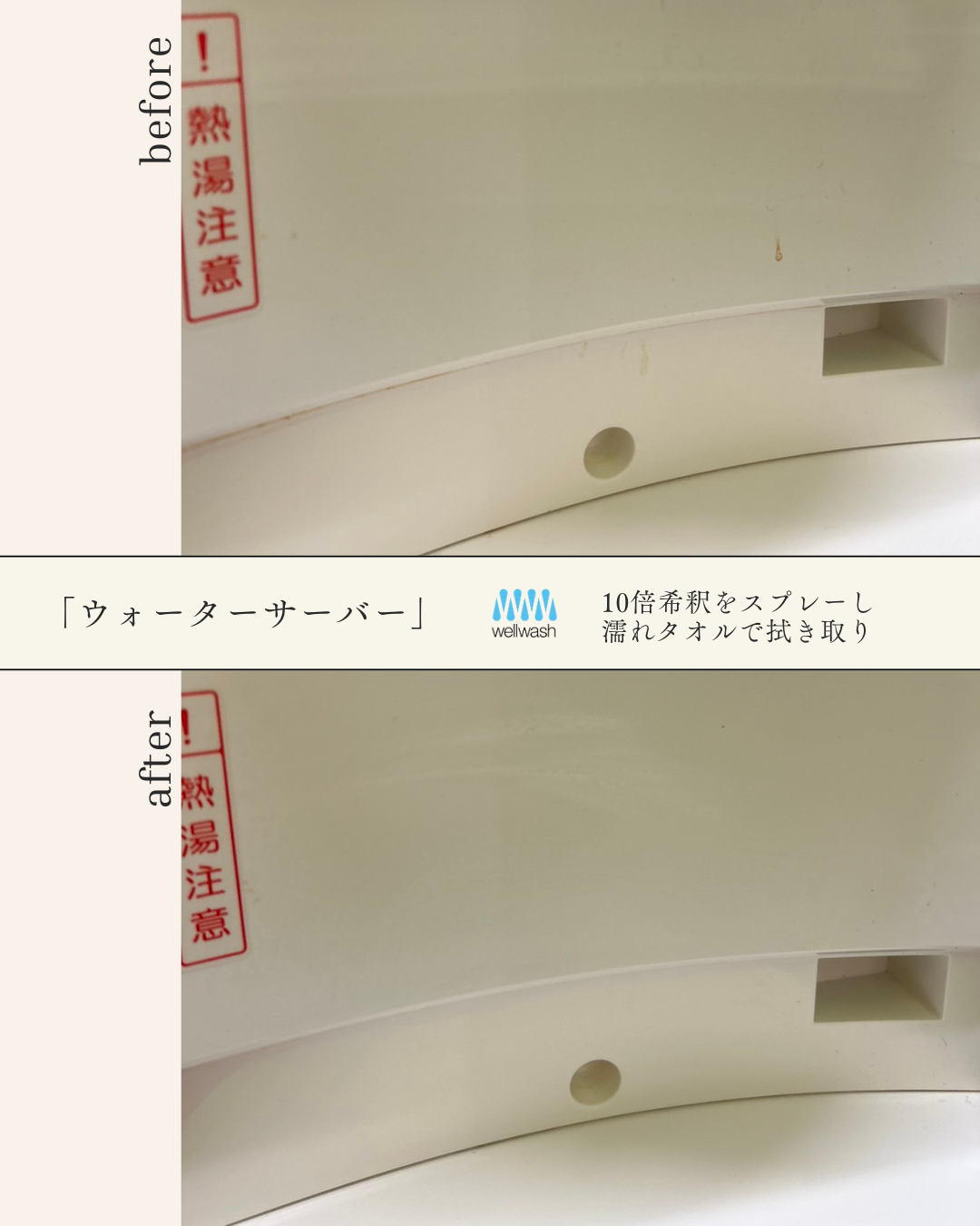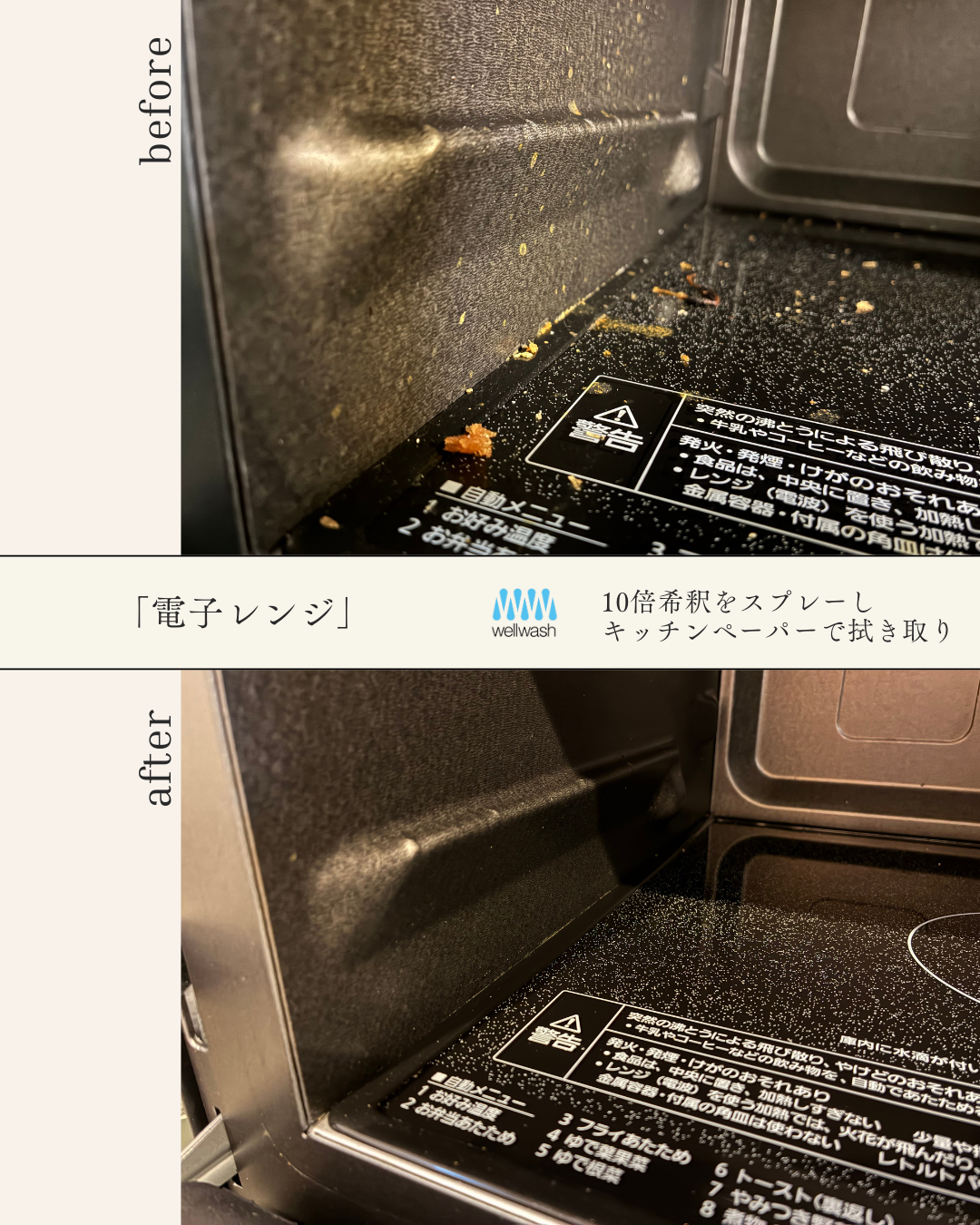 ① 4倍に希釈したおそうじ用洗剤を直接スプレーします。