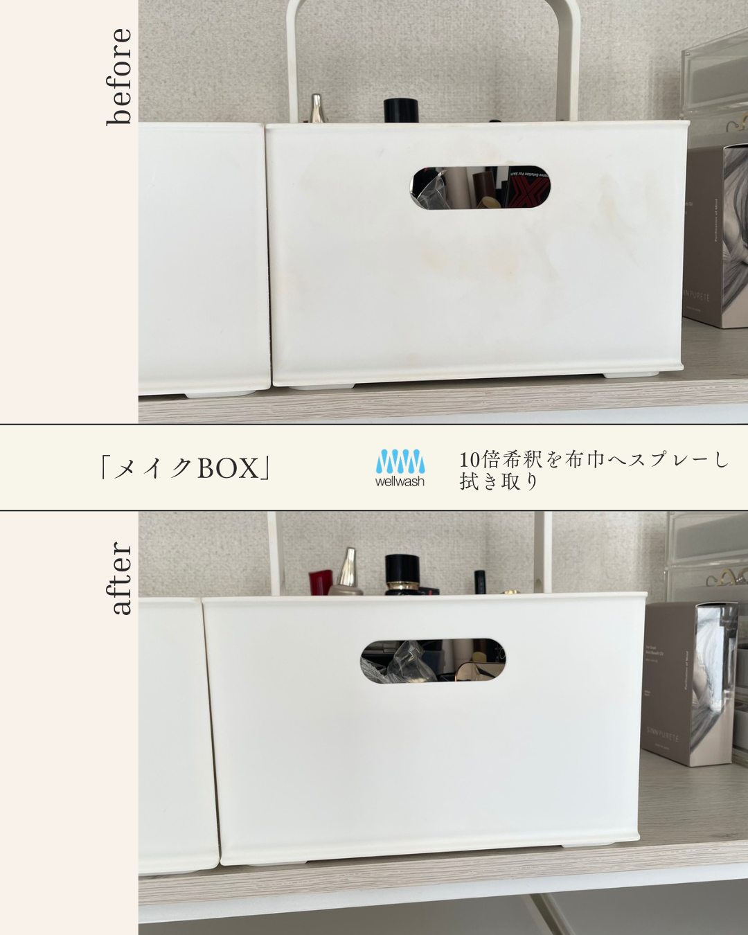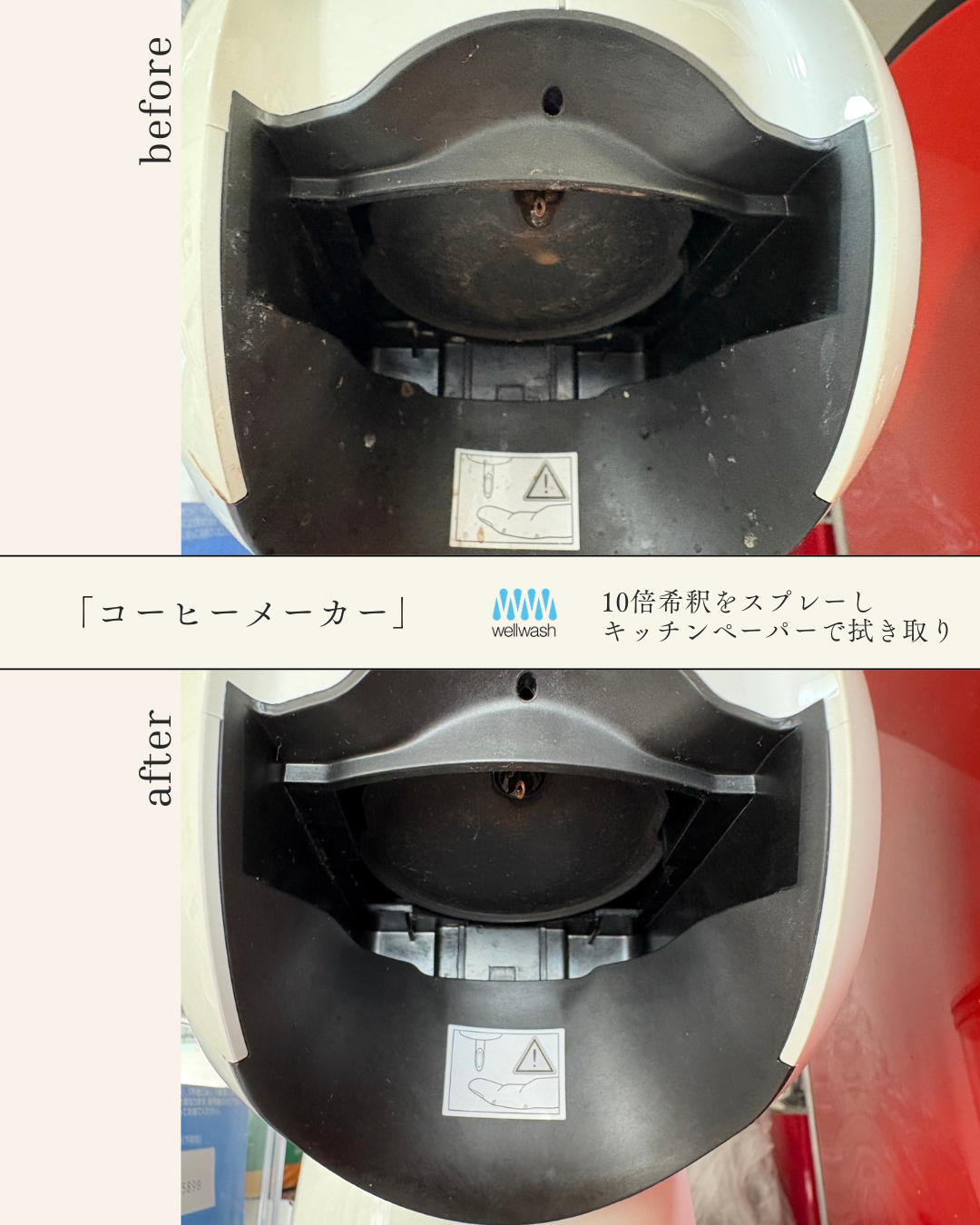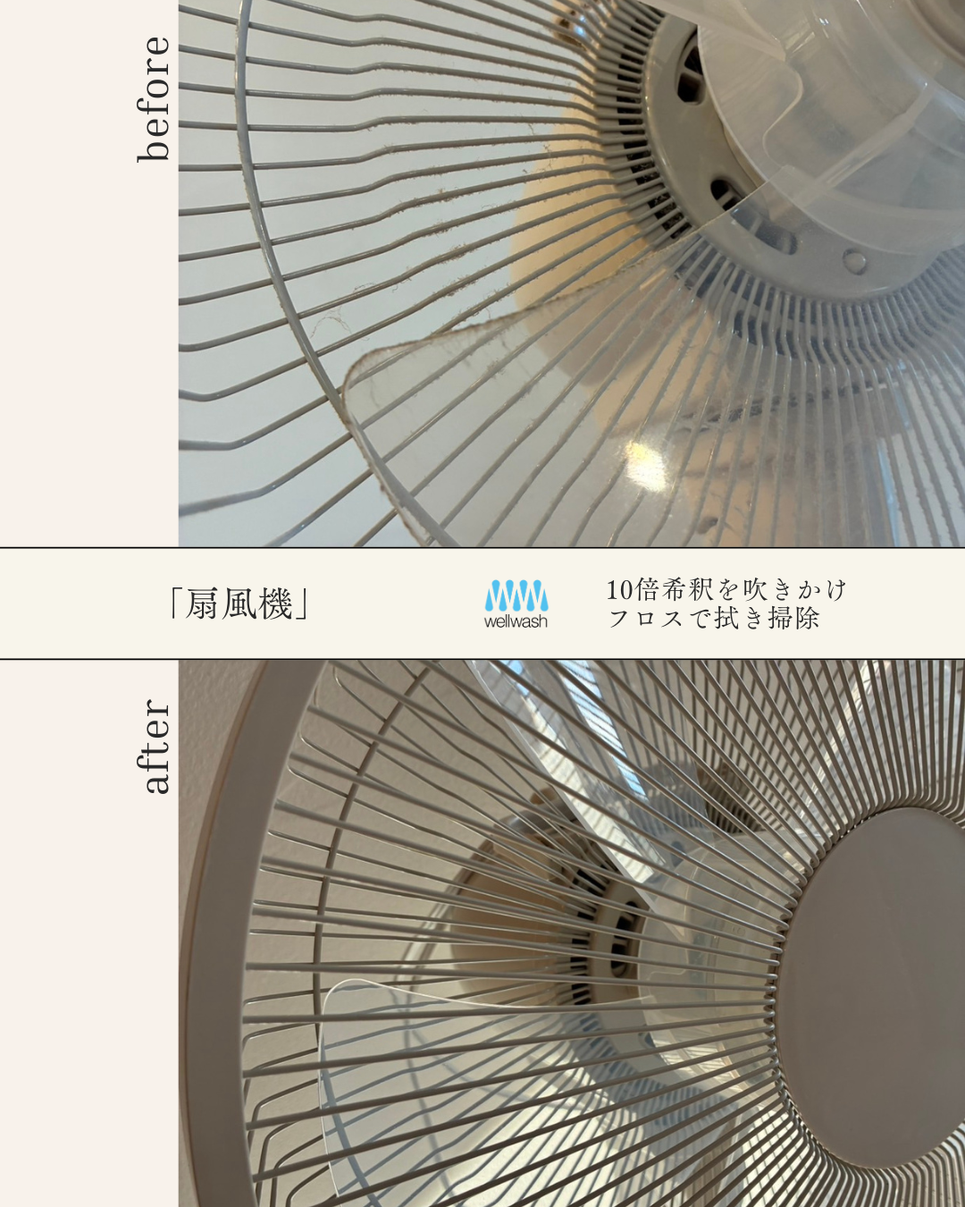 ① 4倍に希釈したおそうじ用洗剤を直接スプレーします。